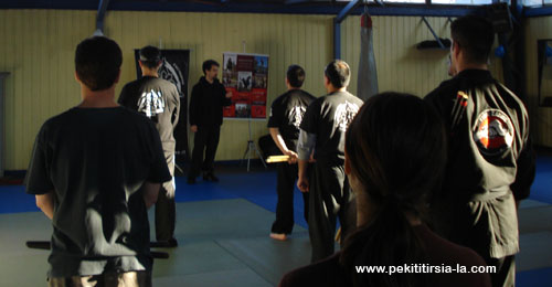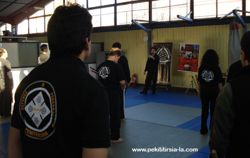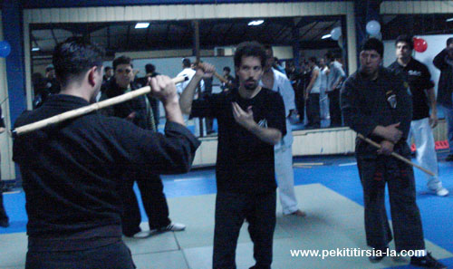 A principios del mes de agosto se realizó por tercer año consecutivo el seminario nacional de Pekiti Tirsia Kali en Chile. El mismo fue nuevamente organizado con éxito por Richard Cubillos Alarcón, único representante en este país de nuestra organización. Fue dictado por Nicolás Wachsmann y el eje temático en esta ocasión giró en torno a la estrategia utilizada por este sistema en los combates con armas de filo.